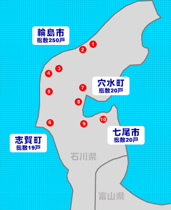 穴水町 45戸、七尾市 20戸